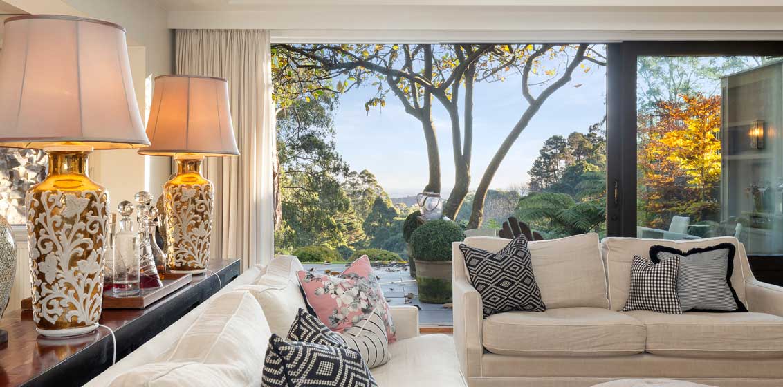 Found on a three-acre plot in the heart of the Dandenong Ranges, Abingdon is perched on the peak of a mountain, overlooking Melbourne, the You Yang Mountains and the bay in the distance. The five-bedroom retreat (catering for up to 10 guests) provides stunning vistas and the lush forest surrounds offer solitude, silence and seclusion.