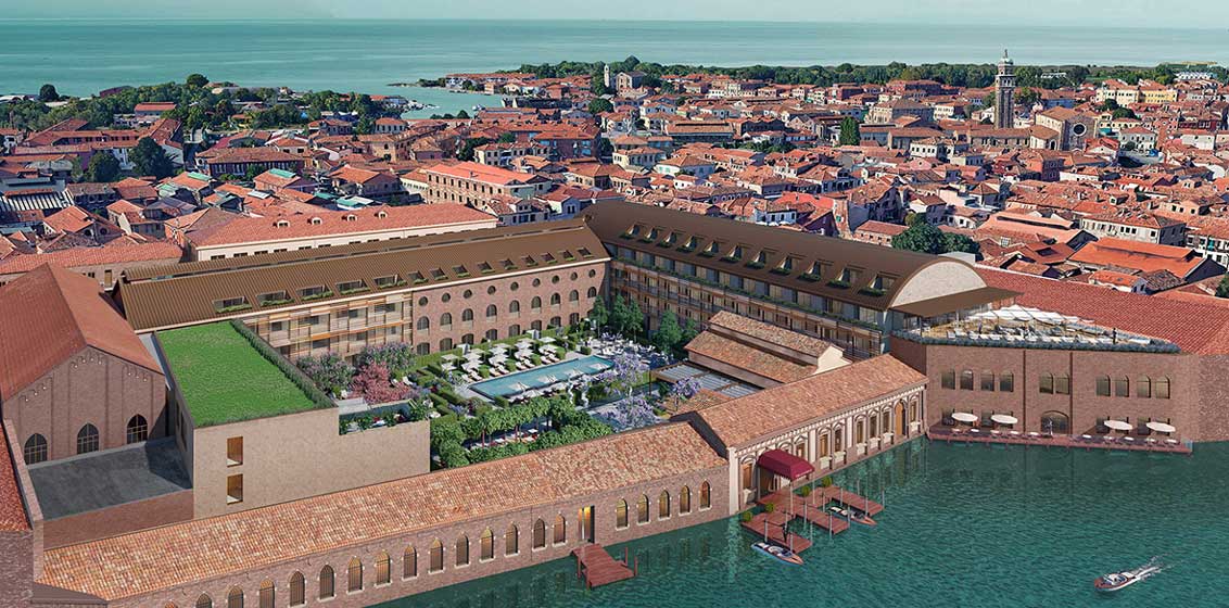 Set directly on the Venetian laguna on the island of Murano, which is famed for its centuries-old tradition of glassmaking, the 133-room hotel including 30 suites, will see award-winning Italian architects Matteo Thun & Partners, restore the 16th Century casino original frescoes as well as the redevelopment of the 20th Century industrial glass factory buildings into a resort complex that speaks to Venice’s historic reputation as la Serenissima (the most sublime).