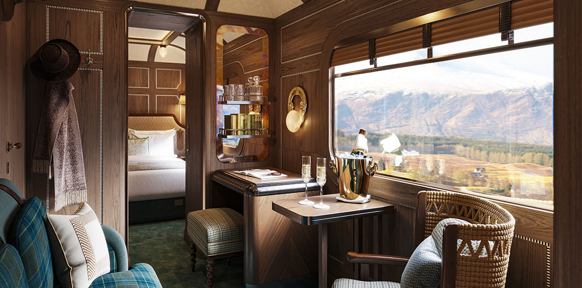 Royal Scotsman, A Belmond Train, Scotland is launching two new Grand Suites in May 2024. Mirroring the look and feel of a luxury country house, the Grand Suites elevate the onboard experience by providing the ultimate setting for a cinematic Scottish escapade.