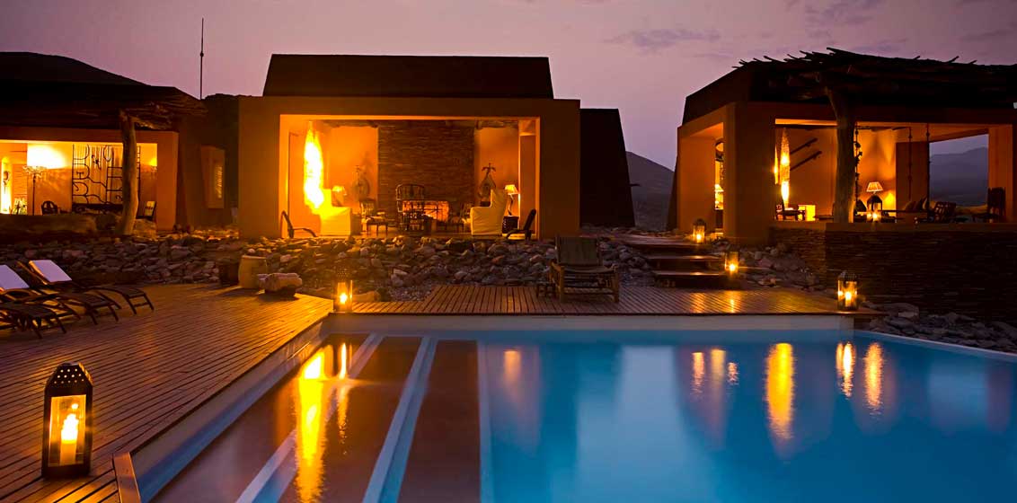 The lodge, located in Namibia’s distant northwest, is surrounded by the vast wilderness of Kaokoland, with various activities for exploration, adventure, and discovery. With just seven individual suites and a two-bedroom family suite, the lodge blends in perfectly against the surreal landscape of endless desert, vistas of rocky outcrops, sand dunes and mountain ranges.