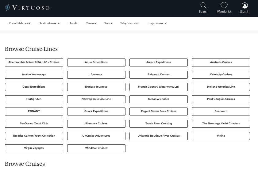 The ink on the new agreement is that fresh, Virtuoso is yet to update its list of current preferred cruise partners online, as captured below by LATTE.