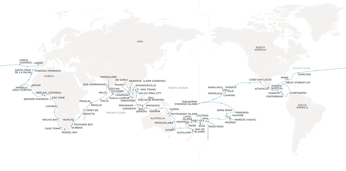 “These five new voyages appeal to those who desire longer more immersive experiences, with itineraries ranging from 61 to 117 nights of unforgettable experiences across the world. Our guests will enjoy unmatched personalized service, impeccable hospitality, and the comfort of our all-suite, all-balcony accommodations.”