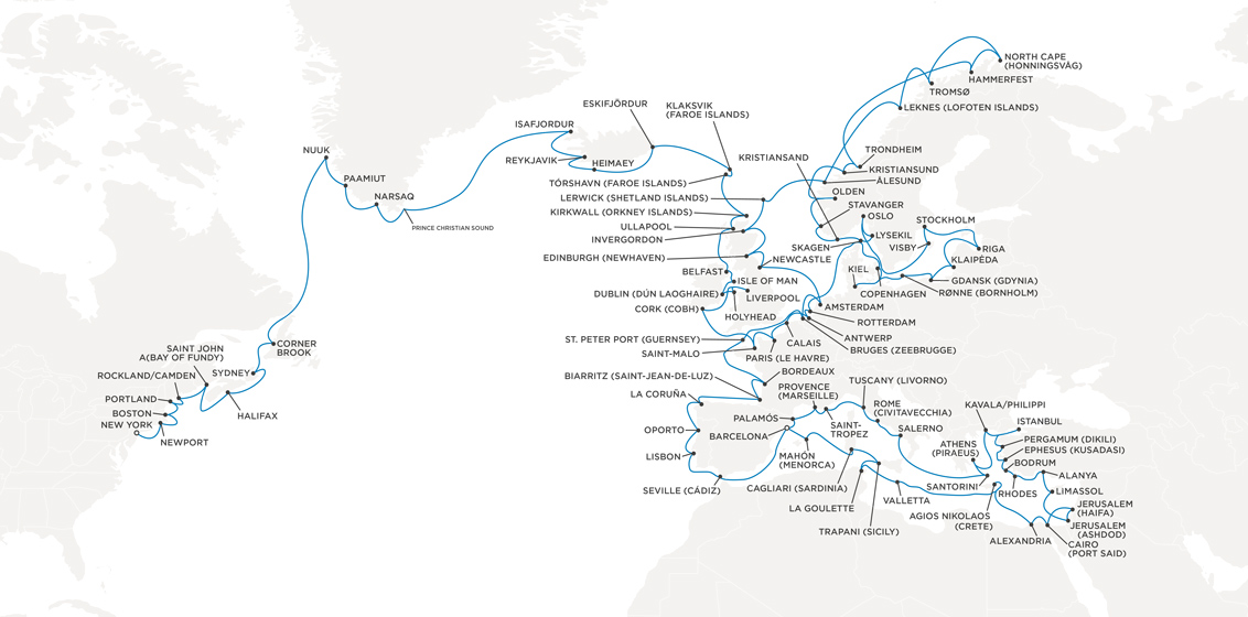 Experience the gems of the North Atlantic, storied shores in Western Europe and historic sites and savoury delights of the Mediterranean on the 117-night Grand Cultural Quest across a kaleidoscope of cultures. Traverse the edges of the Arctic with stops in New Brunswick, Greenland and Iceland. Sample an array of flavours, from Scandinavia to Spain and Turkey.