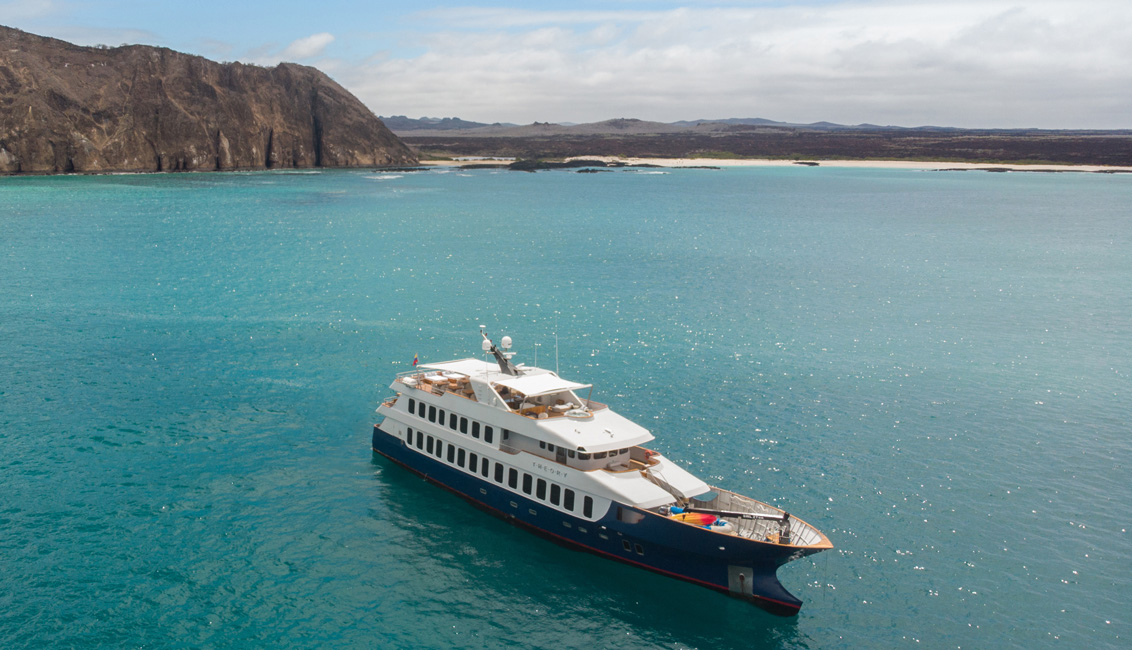 Ecoventura has been a leader in sustainable tourism in the Galápagos since 1991. Sustainable features on each yacht reduce fossil fuel consumption by more than 30%, with a stabilizing system and cutting-edge bow design for smoother and faster sailing (up to 14 knots). In September 2022, Ecoventura installed two new state-of-the-art recycling machines on the island of San Cristobal. In partnership with Avianca, they return 100% of all recyclable materials to continental Ecuador, allowing Ecoventura to meet their goal of ensuring no waste produced is sent to landfills in the Galápagos.Guests can either book an individual cabin, sharing the vessel’s amenities, excursions and meals with fellow guests; or reserve the entire vessel on a private charter, with the ability to customise land activities for the group’s interests. Each yacht features 10 staterooms with full-length panoramic windows; a la carte dining with four-course plated dinners; onboard concierge, fitness centre, sundeck and Jacuzzi; two naturalists — one of the highest naturalist-to-passenger ratios in the region.
