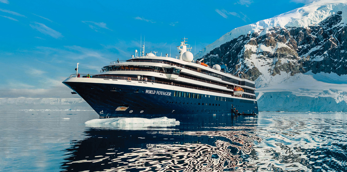 World Voyager is a Polar Category C- and Ice Class 1B-certified vessel, featuring two Rolls Royce hybrid diesel/electric engines.