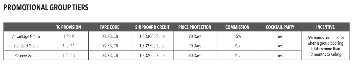 The ‘Promotional Group’ program has been designed for travel partners looking to increase their earnings, generate a dedicated marketing campaign with more shelf life, or package up a particular sailing with their USPs.