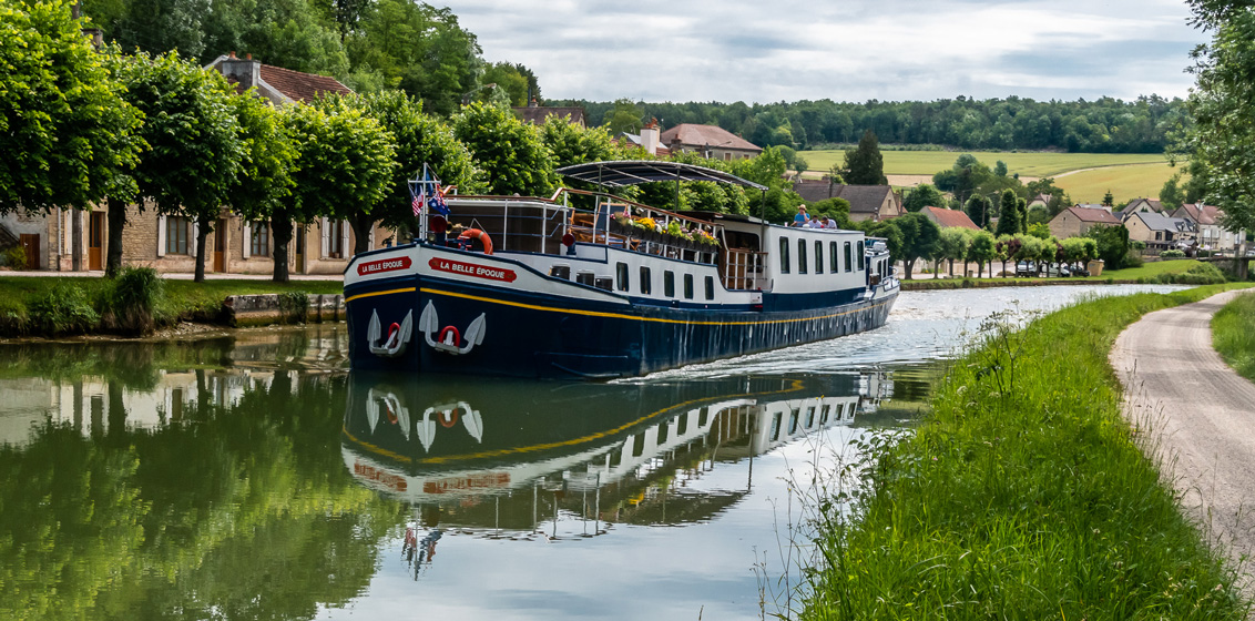 European Waterways’ eight-passenger hotel barge Renaissance cruises France’s oldest canal, the Canal de Briare, in Western Burgundy. Its route passes such notable attractions as the seven-lock flight of Rogny-les-sept-Ecluses, which is a national historic monument. The vessel also crosses Gustave Eiffel’s unique aqueduct at Briare, which spans the River Loire.