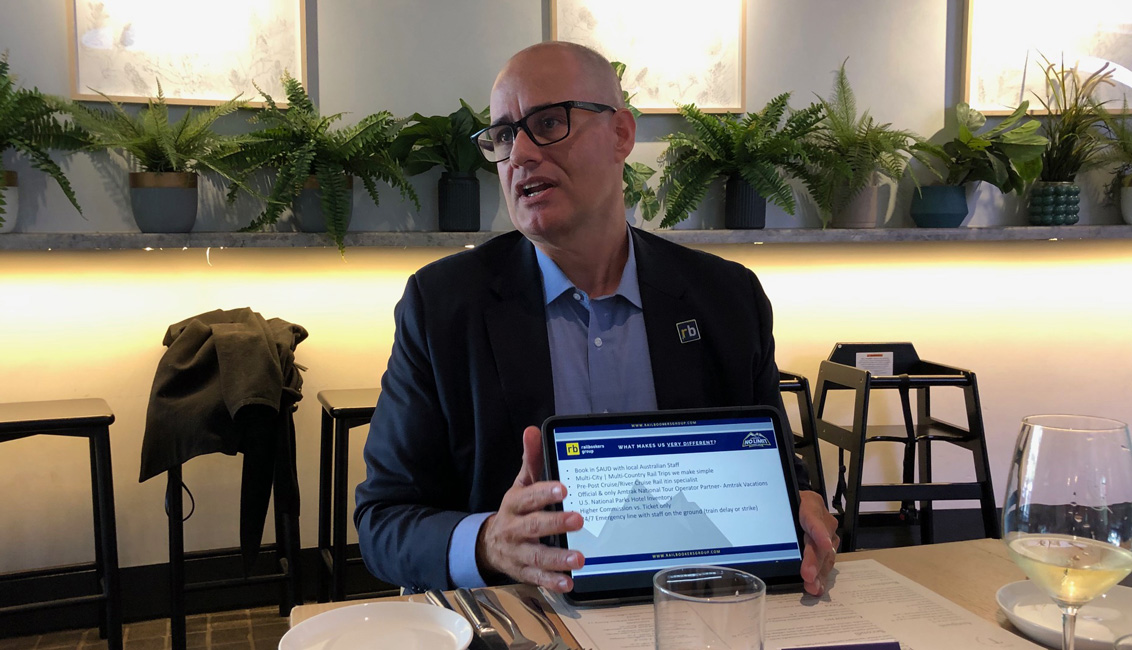 He’s in Australia to thank travel partners for their support in rail bookings over the past twelve months.