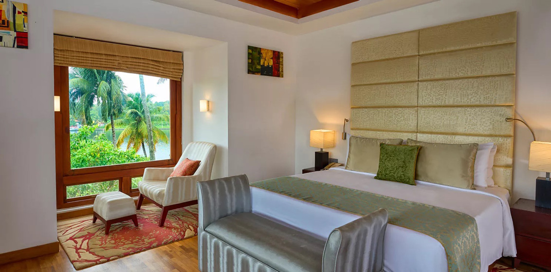 The Leela Ashtamudi, A Raviz Hotel is a tiny hamlet perched on the banks of Ashtamudi Lake, formed by the confluence of the eight lakes, offering a magical backwater experience that flawlessly balances barefoot luxury with rustic charm. Placid, serene waters, surrounded by lush greenery and swaying coconut trees create a tranquil atmosphere perfect for relaxation and rejuvenation. Thoughtfully curated experiences unlock the magic and mystery of the locale and offer an enriching cultural immersion into the destination amidst an awe-inspiring setting.