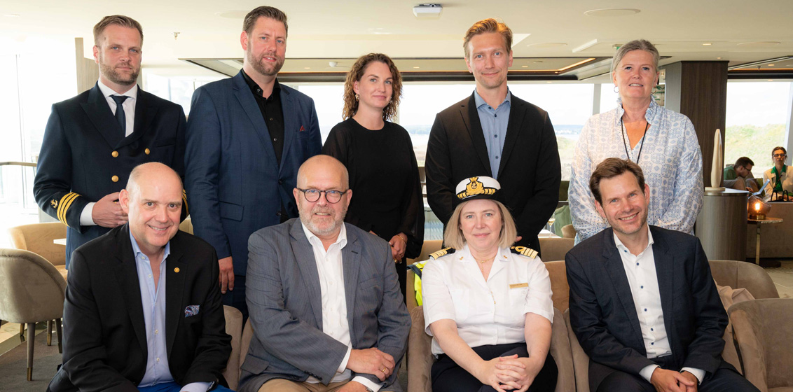The festivities held in Copenhagen on Tuesday also included the traditional crest exchange, a maritime tradition to celebrate a ship’s first visit to a destination – on board with the ship’s master Captain Serena Melani, Johan Hoganfalt, Deputy Port Captain, Sune Christensen, Chief Commercial Officer Copenhagen Malmö Port, Klaus Bondam, Director of Cruise Baltic and Cruise Copenhagen and Michael Ungerer.