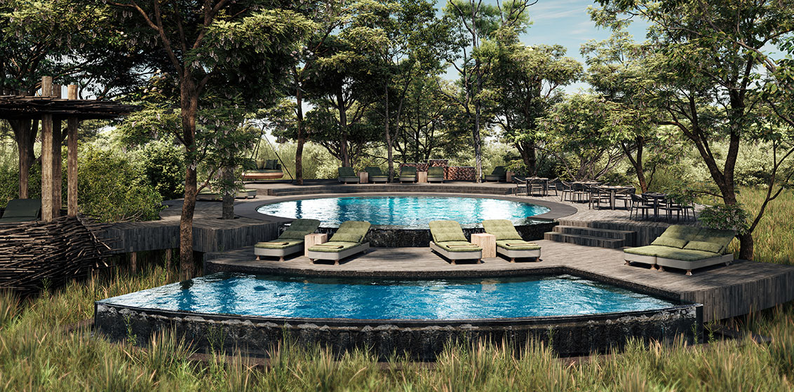 The interior of the library and sitting room will combine elements of traditional Zulu culture with cosy minimalist elegance. A wooden walkway will seamlessly connect the library to a new pool area, which will include a reshaped and tiered swimming pool designed to maximise the scenic setting and timeless beauty of the sand forest. An all-new massage sala will also be constructed next to the pool.