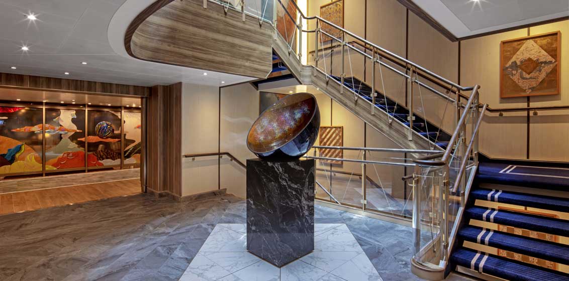 - 4K GSS Cineflex Camera mounted on the mast of the Constellation Lounge and capable of broadcasting imagery from kilometres ahead on monitors located throughout the ship and in guest suites.