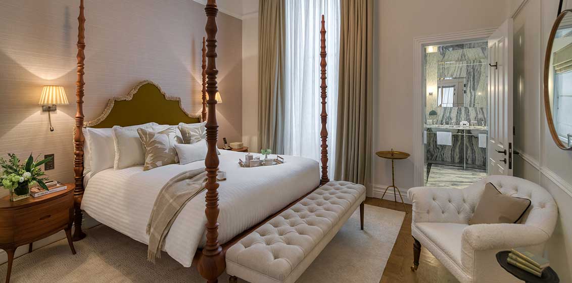 A 19th-century boutique townhouse in a leafy neighbourhood, this home-away-from-home in South Kensington, has a distinctly residential feel. With just 24 elegant rooms and suites, the townhouse offers quintessentially British styling with a modern touch. Inside, antiques are blended with contemporary furnishings, opulent upholstery and original artworks, plus Italian-marble bathrooms with heated floors and organic Bamford products.