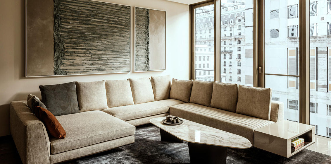Located on the corner of Fifth Avenue and 57th Street, on the upper floors of the historic Crown Building in which Aman New York resides, the Homes set a new standard for elevated city living. Each Home is meticulously designed, offering an unparalleled blend of privacy and comfort and providing the perfect backdrop for both short-term and extended stays. The 110 square metre One-bedroom Home, features floor-to-ceiling windows and city views, while the 345 square metre Three-bedroom Home offers sweeping views of Central Park.