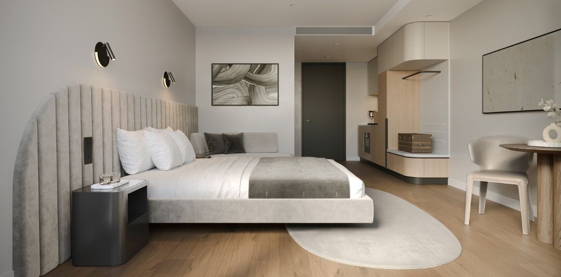 Expected to open in 2025, Hyatt House South Melbourne is a 97-room hotel within Holder East’s Oasis Residences, a luxurious and elegant urban sanctuary designed by Hayball architects. Located minutes from the Royal Botanical Gardens, the Australian Grand Prix race track in Albert Park, ANZAC station, the Melbourne Art Precinct and Southbank, as well as the Melbourne Convention and Exhibition Centre, guests of Hyatt House South Melbourne will be able to experience the best that Melbourne has to offer.