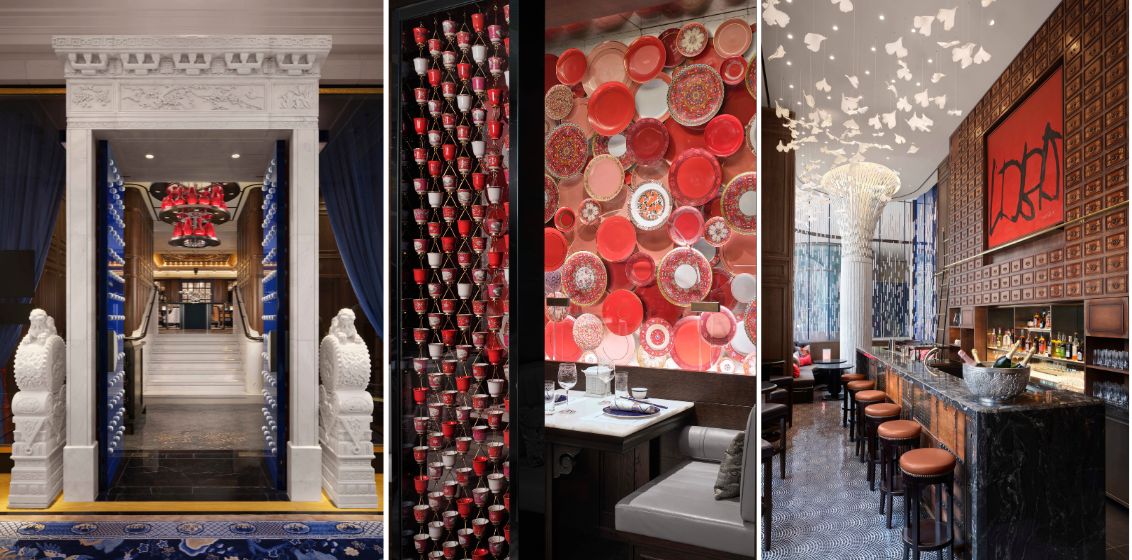 And The Music Room, which proudly displays antique Chinese instruments such as the yueqin (or “moon lute”) and double-stringed guzheng alongside calligraphy-inspired artwork. The main dining room is accompanied by the ground-floor bar, Little Blue, where guests can enjoy cocktails inspired by flavours of the East.