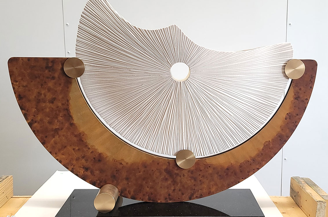 The stainless-steel sculpture “Water in Dripping – Waterfall” by Zheng Lu can be found at Serene Spa & Wellness on Deck 5.