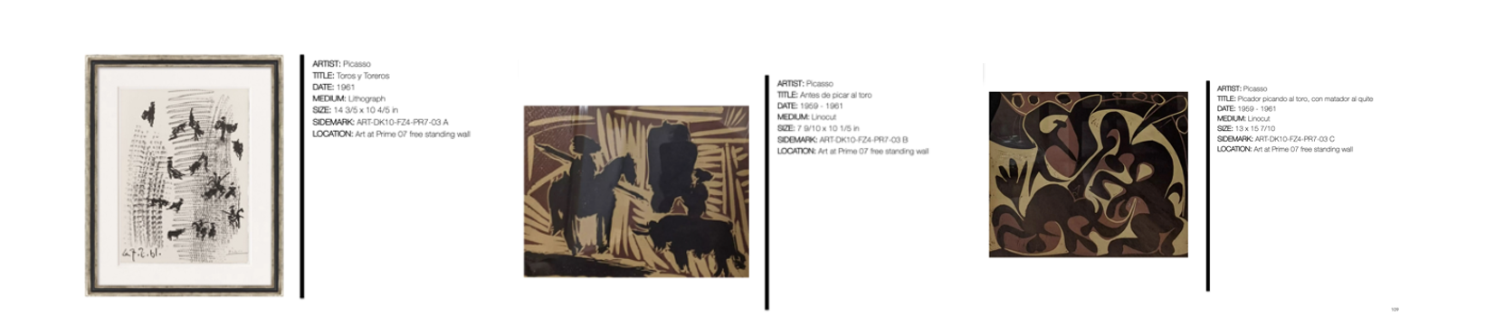 • Pablo Picasso (Lithograph and Linocut). “Toros y Toreros”, “Antes de picar al toro” and “Picador picando al toro, con matador al quite”