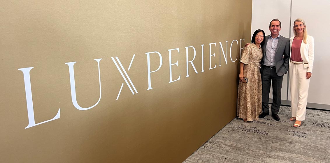 Lead image: Captured by LATTE at Luxperience 2023 – James Kavanagh, Global CEO of Leisure, FCTG with Luxperience’s Lynn Ormiston and Lauren Dunemann.