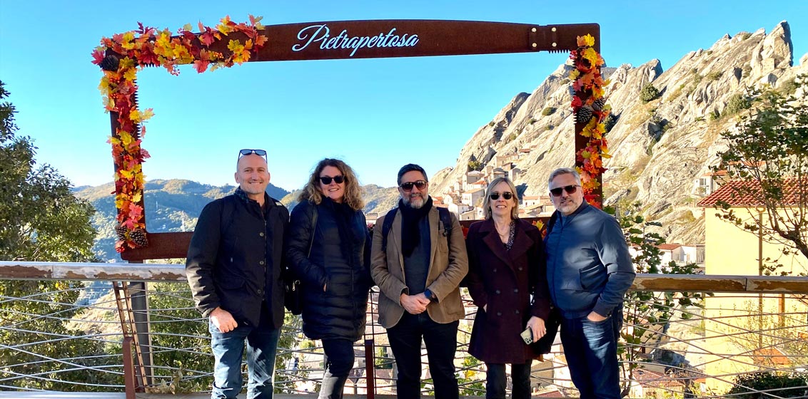 Lead image: Pictured in Piertrapertosa from left are: Emanuele Attanasio, INTB; Megan Thackray, Albatross Tours; Marco Patavino, Il Globo; Michele Salazar, UTracks and Cos Matteo, Holidays of Australia & The World.