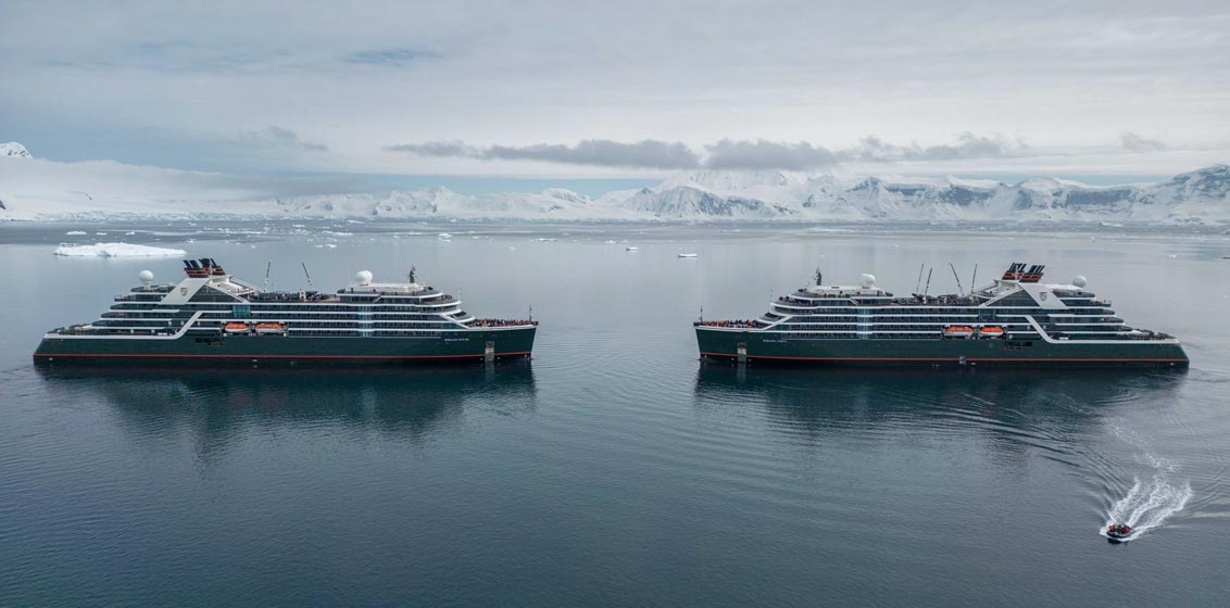 “Seeing our two ships sail side by side at the start of our Antarctica season solidifies the fact that we at Seabourn are able to introduce so many more individuals to breathtaking, remote destinations that few will ever visit,” Captain Schuchmann added.