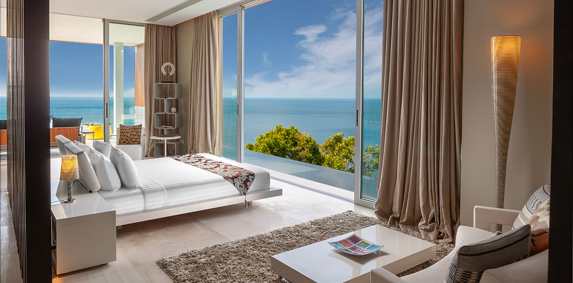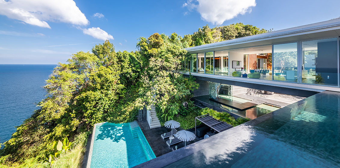 The contemporary Villa Mayavee is exquisitely designed to capture breathtaking views of the Andaman Sea from sunrise to sunset. The property is characterised by sprawling terraces and expansive floor-to-ceiling windows, which create seamless indoor-outdoor living spaces.
