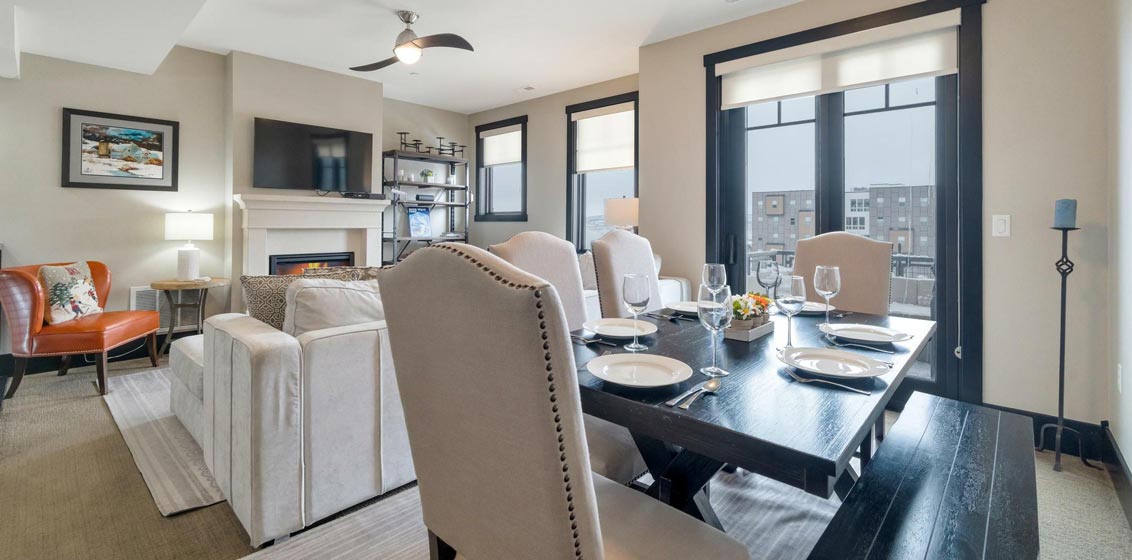 Blackstone Escape at Canyons – This delightful three-bedroom chalet in Canyons Village checks all the boxes, with convenience for dining and shopping as well as some of the best ski trails in the Rockies. The main living area is cozy, comfortable and arrayed with retro-chic-meets-contemporary-class furnishings and a fireplace, while the sleek kitchen, intimate dining space, indulgent hot tub, and access to a community heated pool ensure a right-at-home feel.