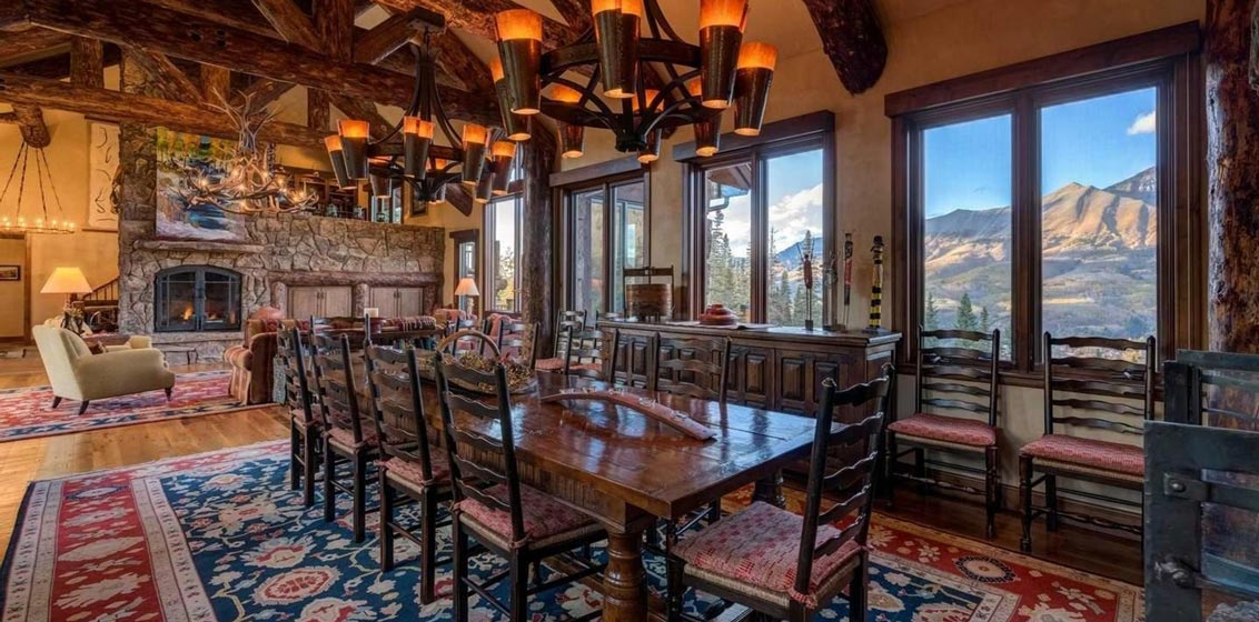 Canyon View Escape – Discreet and delightful, this six-bedroom chalet in one of Telluride’s most desirable settings unfolds as a warm, welcoming, comfortable and contemporary hideaway for lovers of the great outdoors. A bespoke dining table and al fresco dining area on the terrace ensure perfect backdrops for every meal, while the feature fireplace is surrounded by plush sofas. Outside, an oversized hot tub, fire pit, and heated patio create an inviting scene for soaking up incredible mountain vistas.