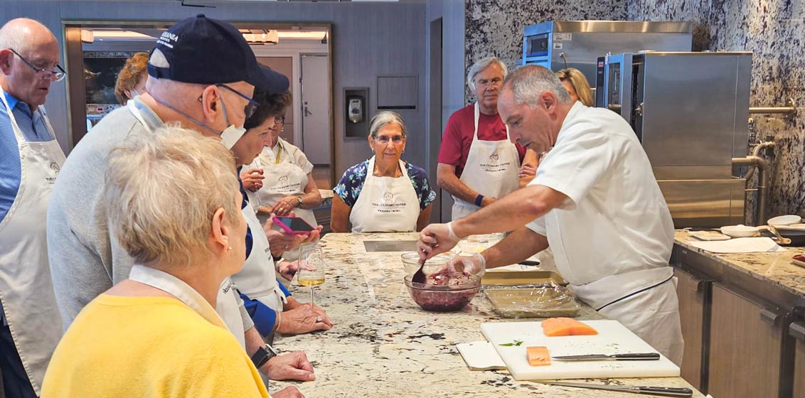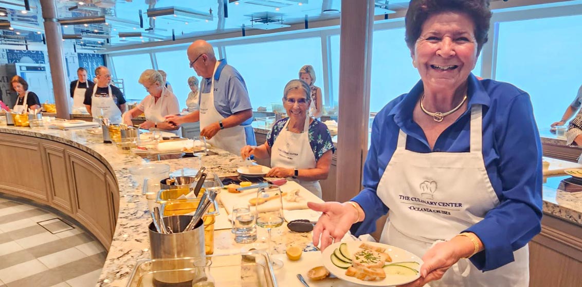 Marina and Riviera were also the first ships ever to have an onboard cooking school. Due to the immense success of the onboard Culinary Centers, the line has doubled the space of this on board its newest ships, Vista and Allura.