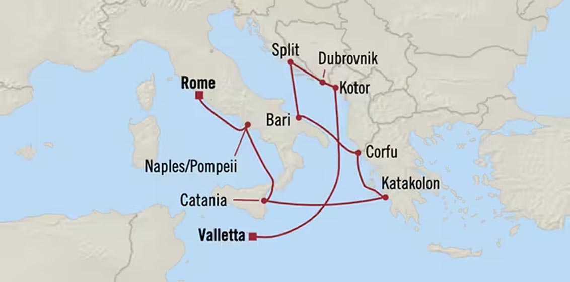 Marina will sail from Valletta (Malta), to Civitavecchia (Rome), Italy on 16 October 2024, calling at ports in Croatia, Greece and Italy, giving guests the chance to explore local cuisines ashore as well as on board.