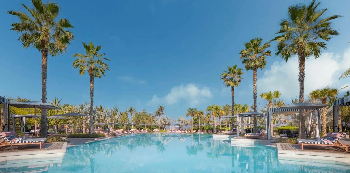 Modern and streamlined in concept, the former five-year-old Caesars Palace Dubai is imbued with a strong sense of place, fitting in seamlessly among the buildings of the gleaming Dubai Marina in the background. The property occupies a 500-metre stretch of pristine, private beach boasting uninterrupted views of the Arabian Gulf and the iconic Ain Dubai observation wheel.