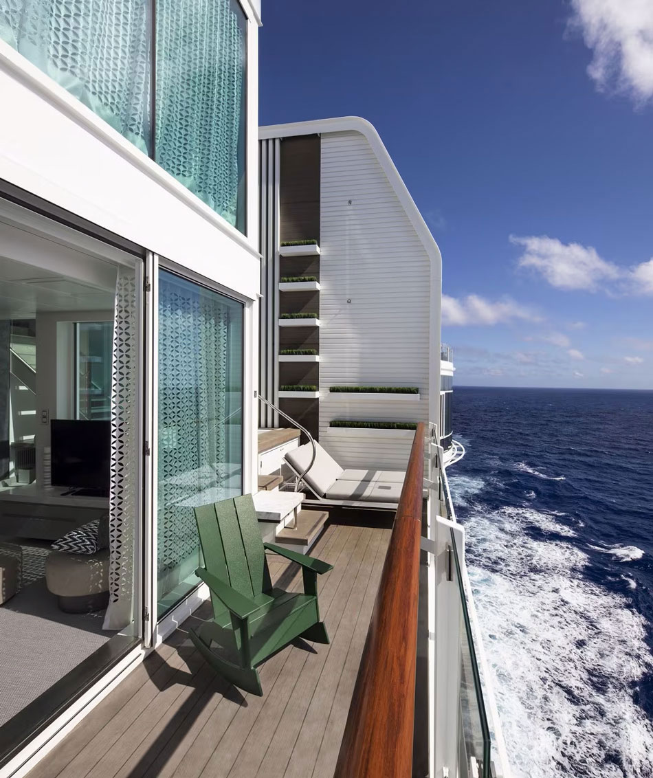 Lead image: The Iconic Suite offers panoramic views from front to back. And with over 2,500 square feet of indoor and outdoor opulence, Iconic Suites are also the most luxurious and largest in the Celebrity Cruises fleet.