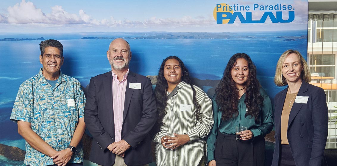 Lead image: His Excellency, President Surangel Whipps Jr.; Peter Douglas, Helloworld National Sales Manager; Ultei Surangel, Moded Surangel and Sarah Anderson, GTI Managing Director.