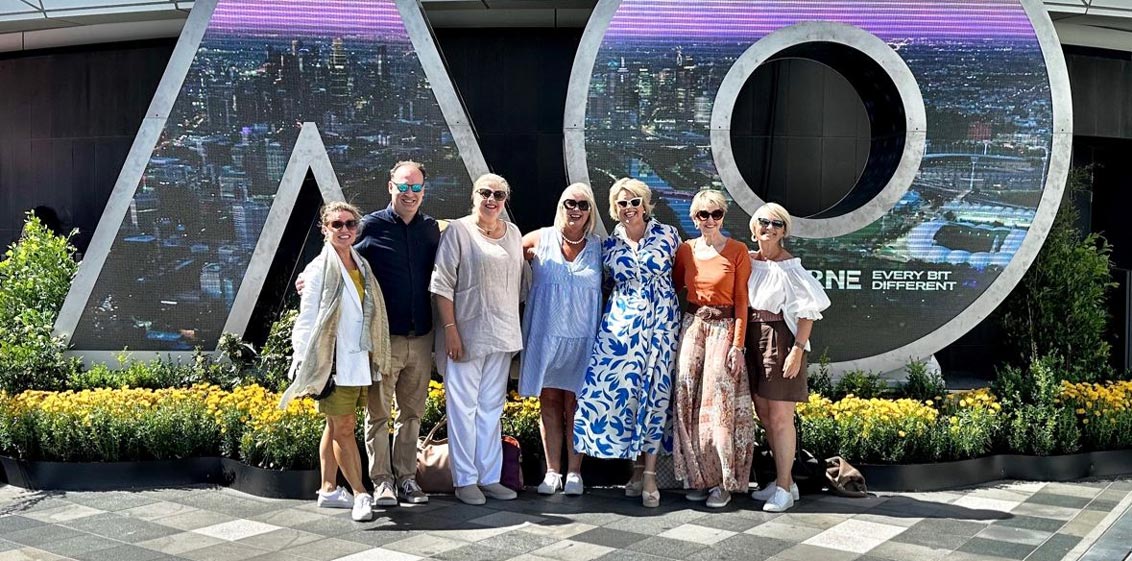 Lead image: Outside Rod Laver Arena earlier this week, from left are: Justine Sealey, Ramsgate Travel Service; Faye Cohen, Wentworth Travel; Ian Mallinson, Balwyn Travel; Lisa Pile and Scott Graham from Regent Seven Seas Cruises; Carolyn Allen, Warrandyte Travel; Mandy and Mike Dwyer, Main Beach Travel; Tara Kocass, My Cruises; Vicki Williamson, MTA Travel; Elsa McLean, Regent Seven Seas Cruises; Garry McLaughlin, First Class Escapes; Matt Vince, Regent Seven Seas Cruises and Tammy Houston, Houston & Turner Travel Associates.