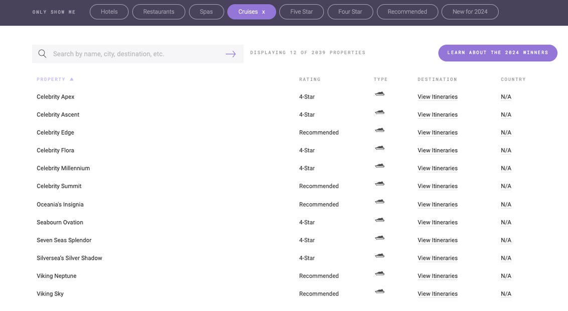 “We’ve been rating Hotels and Restaurants since 1958, then Spas within hotels since 2003 and ocean and small river cruise ships in 2023.”