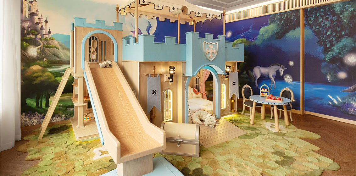 Launching in April 2024, and large enough for parties and special celebrations, these suites offer the ultimate in creativity and fun for both parents and children of all ages. Each comprises a spacious, elegant room with a luxurious king-size bed for parents, a children’s room with an immersive thrills and adventure theme with a slide, and a separate living room.