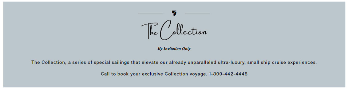 Instead of expedition experiences, itineraries in ‘The Collection’ will include “very private events, shoreside events, events onboard, exclusive access to different experiences” and more.