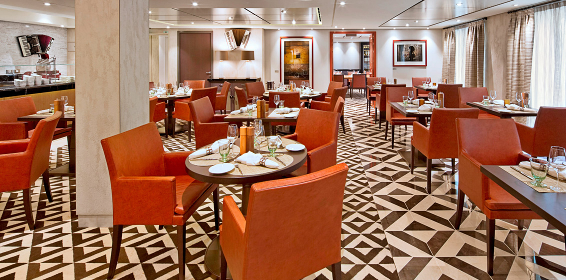 The main dining venue, The Restaurant, features the widest menu choice on board, presenting fine cuisine amid a chic setting with sweeping views that make every meal all the more memorable. For something different, their alternative restaurants shine a spotlight on exciting regional specialties, while still catering to those western classic cravings.