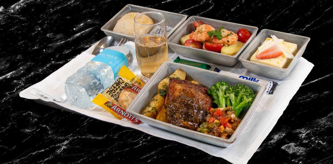 Customers may choose from two premium main course options, either international or Asian cuisine, on every flight. Highlights include new dishes such as Beef Bourguignon served with bacon, mushrooms, vegetables, and potato gratin, Bak Chor Mee (minced pork noodles), and Thai-style Crab Curry served with a combination of jasmine rice and brown rice, and seasonal vegetables with egg.