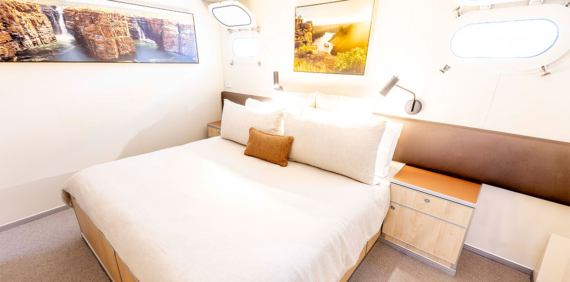 Guests joining the much anticipated 2024 Kimberley season will be the first to experience one of the more significant changes from the refit – the new Ocean Premium Cabin class, available on True North. Responding to guests’ calls for more flexible and adaptable room settings, the new cabin class offers a choice of a twin share or double bed layout.