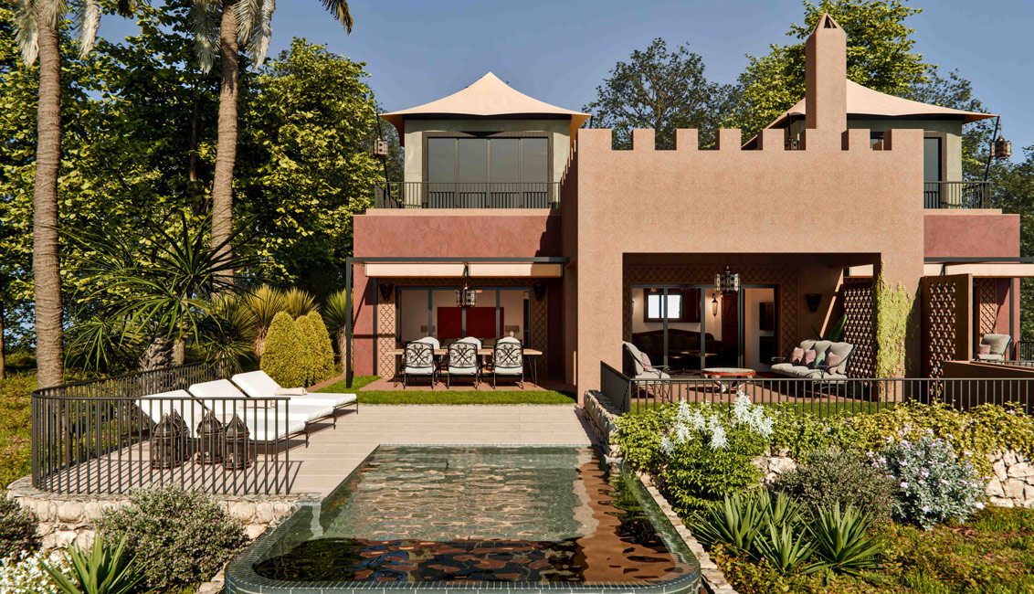 Updated plans now offer a glimpse of the vast three-bedroom riads, including the additional bedroom and which can accommodate up to 10 people.