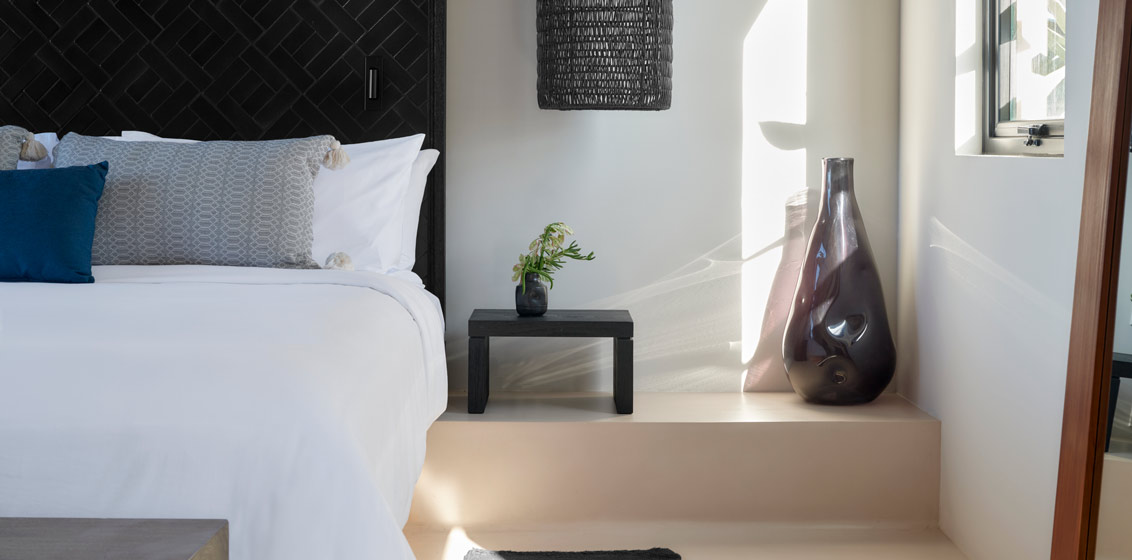 Kimpton Mas Olas is perched on the pristine coastline just north of Los Cabos. The resort boasts 103 guest rooms, including 12 oceanfront villas, spread across 27 buildings representing pueblo life in Mexico. Guest rooms are designed in a contemporary and approachable manner, punctuated by clean lines and organic details of woven palo de arco walls, handmade tiles and light fixtures. Each room is warm and welcoming with many featuring outdoor showers, plunge pools and private roof decks; while each of the villas features its own plunge pool and fire pit – all of which blend into the natural landscape.