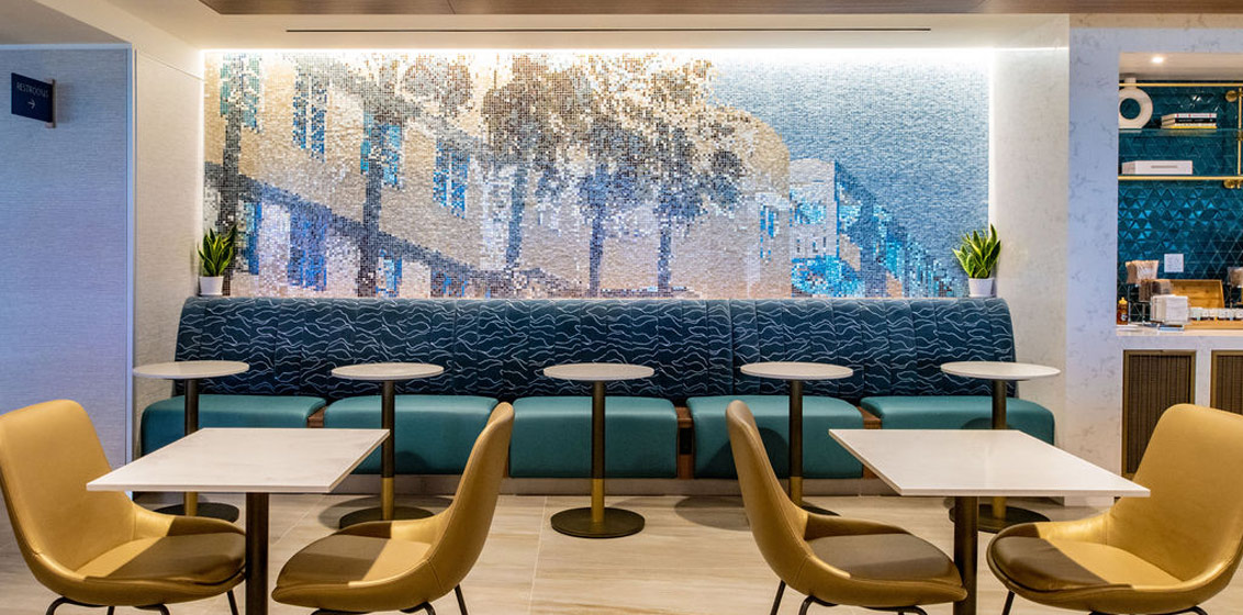 The expansion’s design takes inspiration from Miami’s bright colours and sunny beaches. A new mosaic pays homage to the city’s classic Art Deco architecture, while the overall colour palette reflects the nearby turquoise waters, blue sky, and white and gold accents seen in south Florida designs.