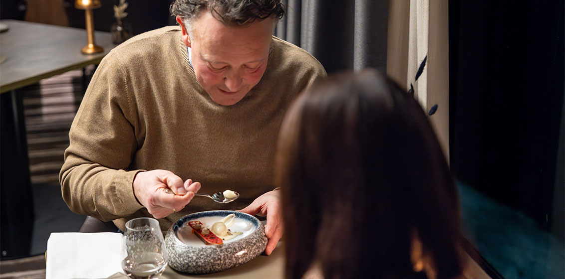 Lead image: Head Chef Douglas Spiik preparing food for Hurtigruten’s guests onboard MS Trollfjord’s fine dining restaurant Røst.