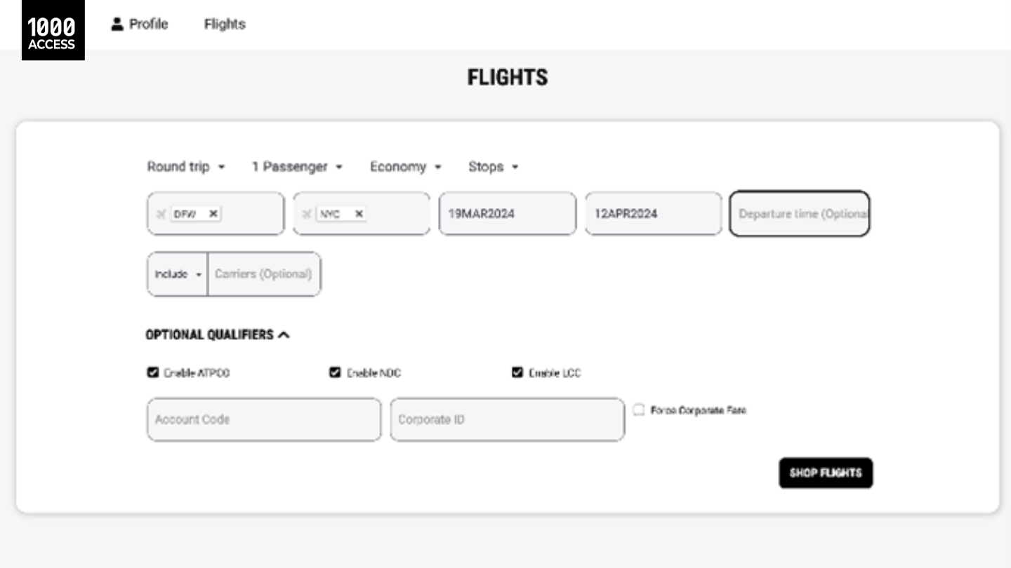 Providing a consumer-grade user interface, 1000Access makes it easy for independent travel advisors to book trips quickly. At launch, 1000MTG travel advisors can shop, book and ticket traditional air content, NDC offers, and low-cost carrier XML options. Over time, 1000MTG will activate additional capabilities, including hotel and ground transportation content.