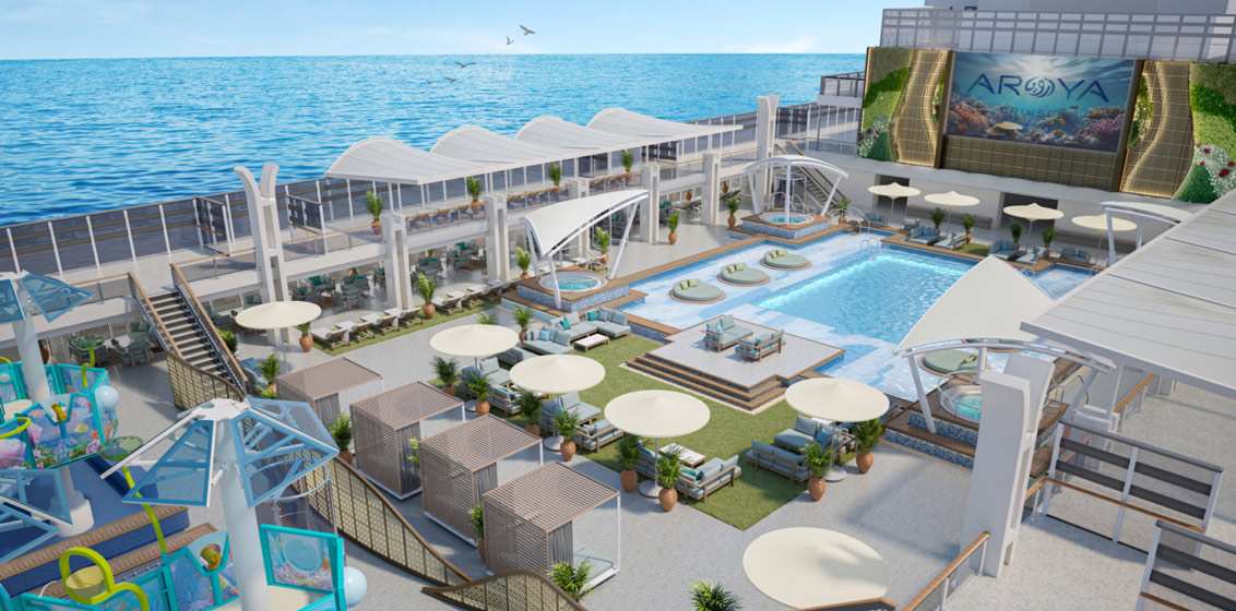 Facilities on board AROYA include 15 restaurants, 20 venues, a waterpark with five slides and a wellness area measuring nearly 2,000 square metres.