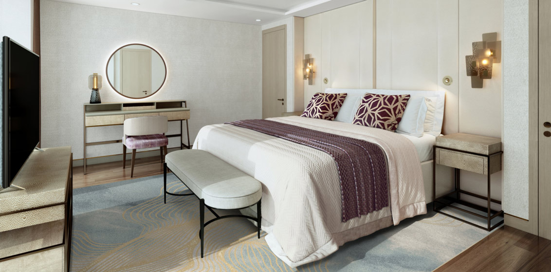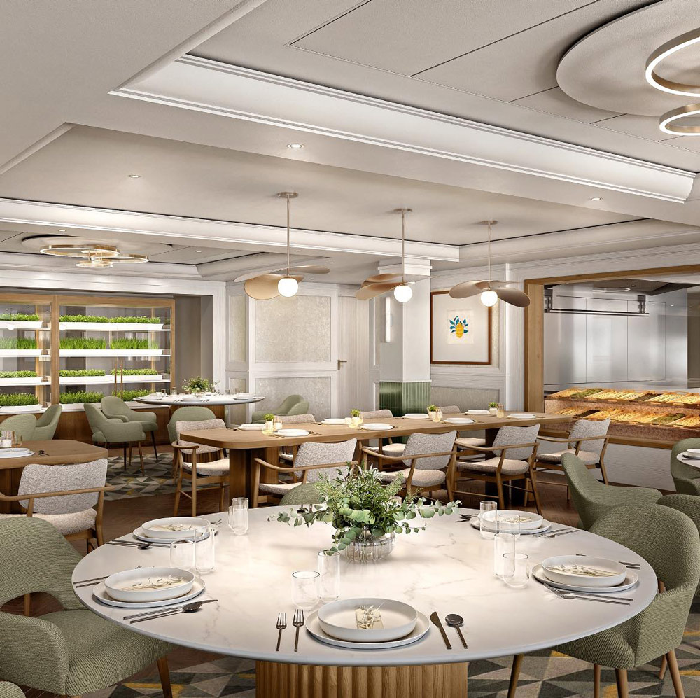 Within the cabin inventory are 154 “VIP” suites and villas which appear to be a ‘ship-within-a-ship’ concept adopted by many contemporary cruise lines to appeal to the high-end market. Elsewhere, the website – aroya.com – indicates this VIP section is branded as “Khuzama by AROYA”.
