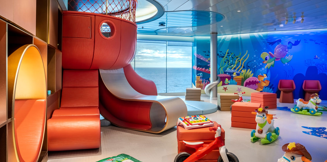 Kids can enjoy complimentary lunch and dinner as part of the kids’ program, ensuring parents have peace of mind while they explore the ship or relax in the sunshine.