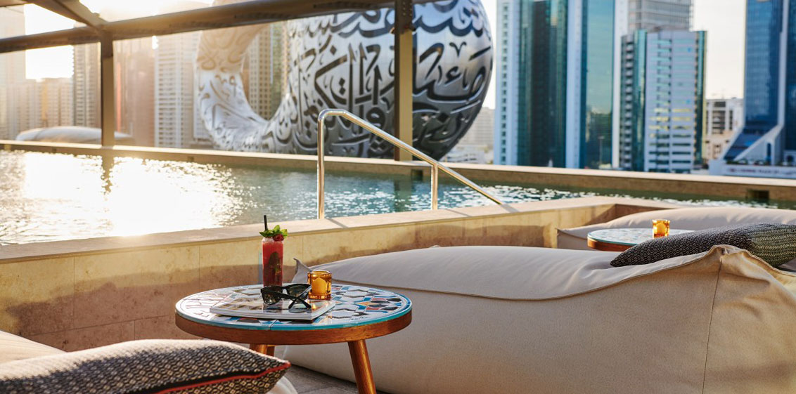 Based adjacent to Dubai’s iconic Museum of the Future, the 5-star 25hours Hotel Dubai One Central draws inspiration from traditional Bedouin culture and design, but with a modernised twist. For guests wanting to relax they can unwind in the Extra Hour Spa, a unique, rooftop sauna that overlooks the stunning city of Dubai.
