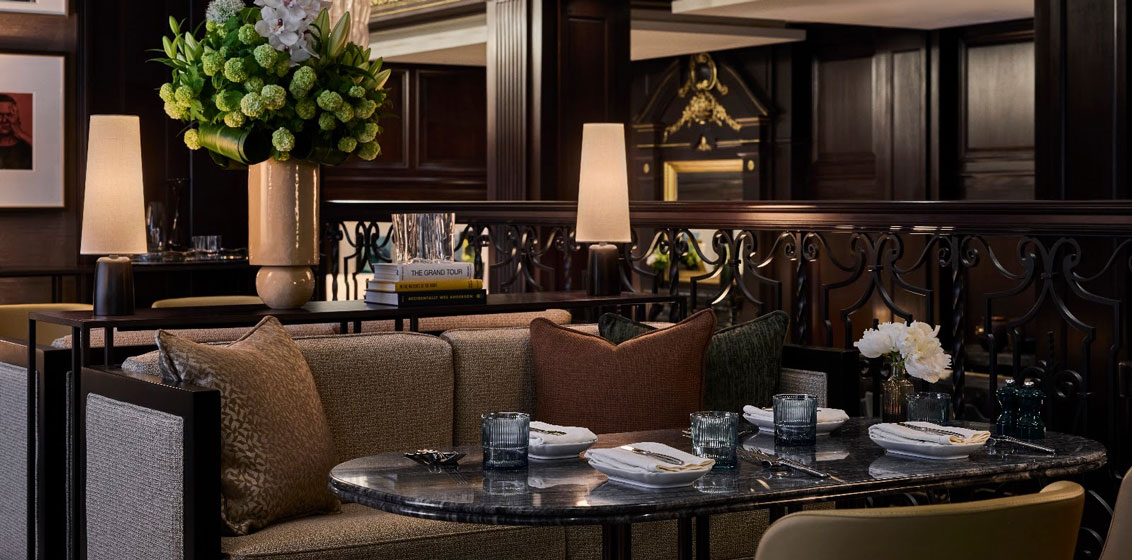 Embodying the spirit of the gilded art deco era, The Georgia Bar is the hotel’s new mixology-focused concept, centered around a dramatic, u-shaped Arabescatto Orobico marble-top bar with a backdrop of stately mahogany-panelled walls and marble checkerboard floors.